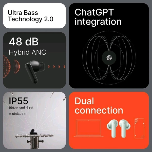 - 48dB Hybrid Active Noise Cancellation (ANC): Immerse yourself in pure audio by eliminating unwanted background noise, whether you're on a busy street or in a crowded room.